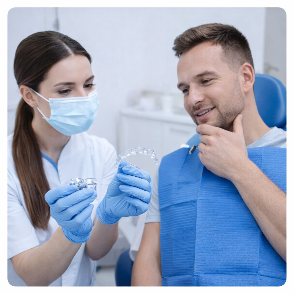 На основе диагностики составляем подробный план и подбираем оптимальную систему: элайнеры или брекеты.