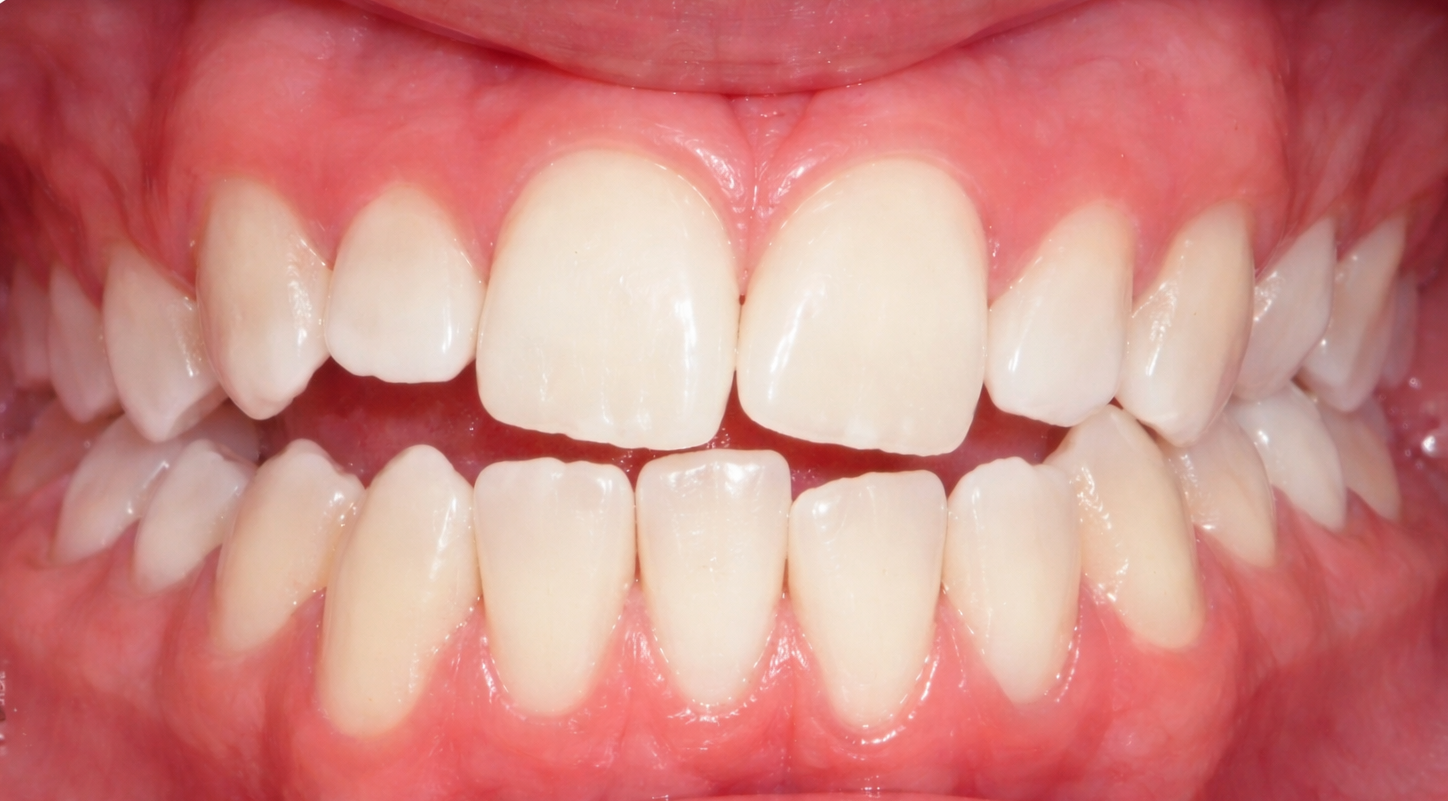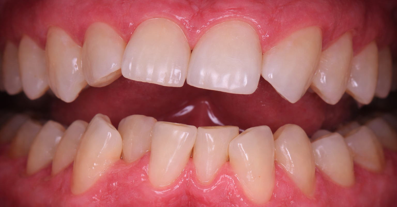 При смыкании челюстей между зубами остаётся промежуток — это нарушает прикус и может влиять на жевание.