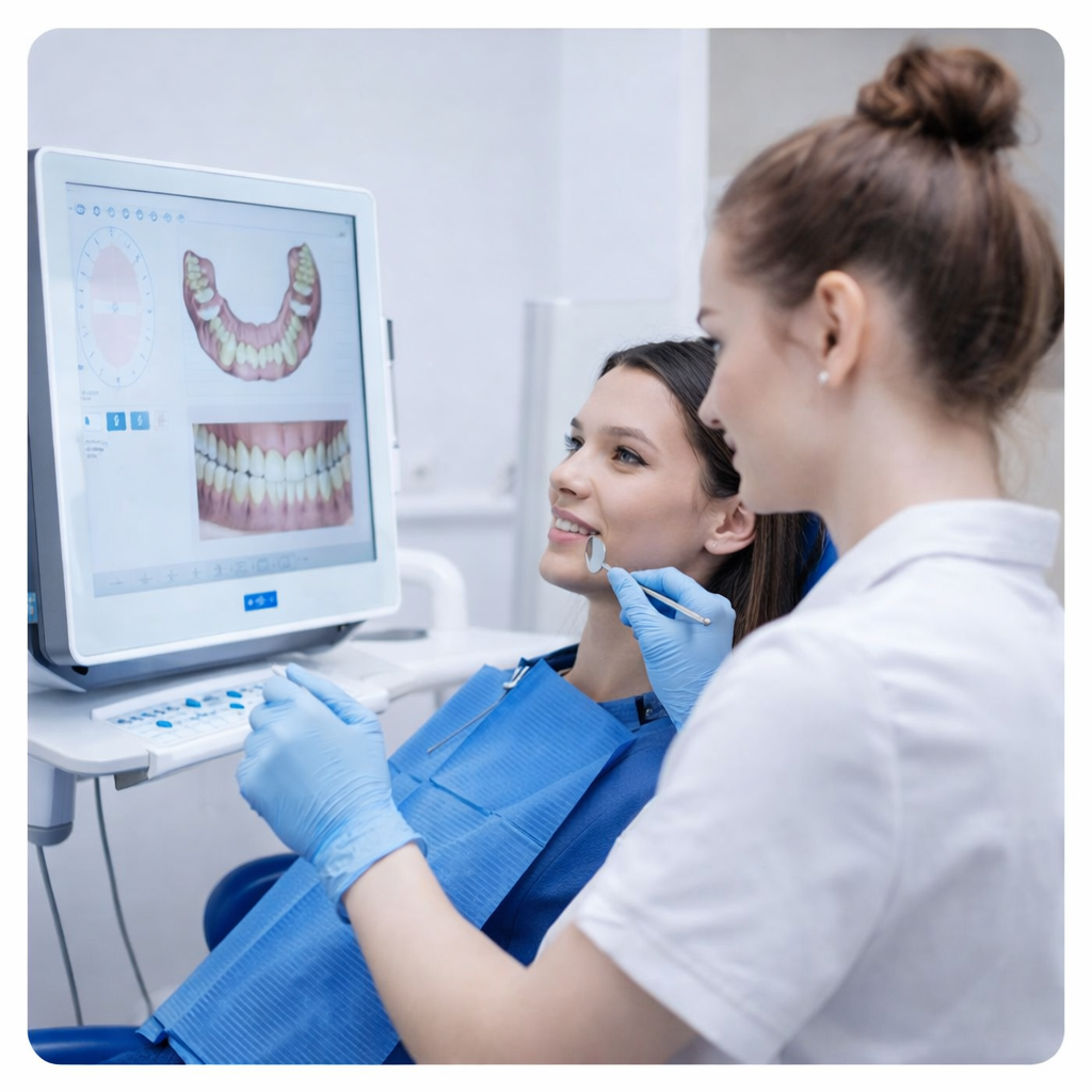 Создаём точную цифровую модель зубов и прикуса без дискомфорта. Это помогает увидеть полную клиническую картину и подобрать оптимальный вариант лечения.