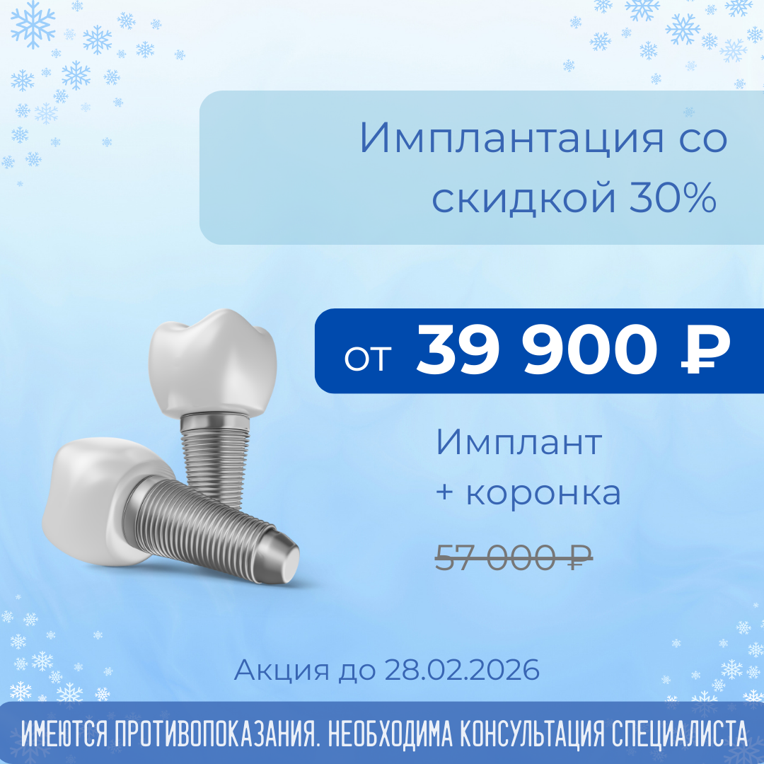 Имплантация! Всё включено: имплант + коронка = 39 900 ₽